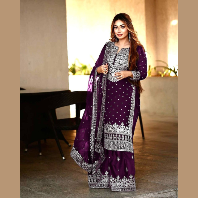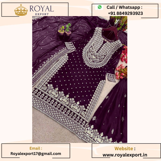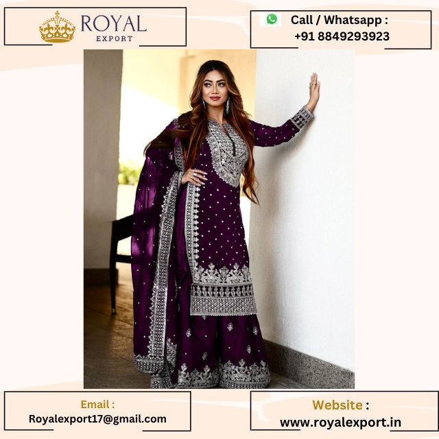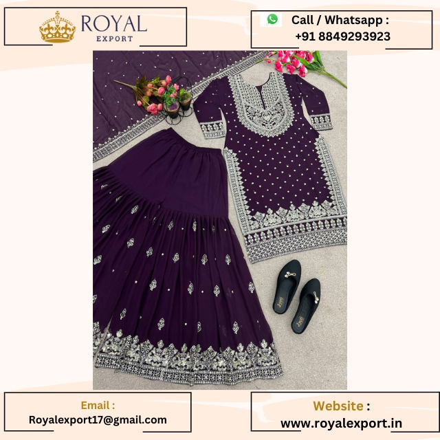 เปิดตัวงานลําดับเย็บปักถักร้อยหนักใหม่คอลเลกชันสูทชุด Gharara และ Dupatta ขายส่งโดยรอยัลส่งออก