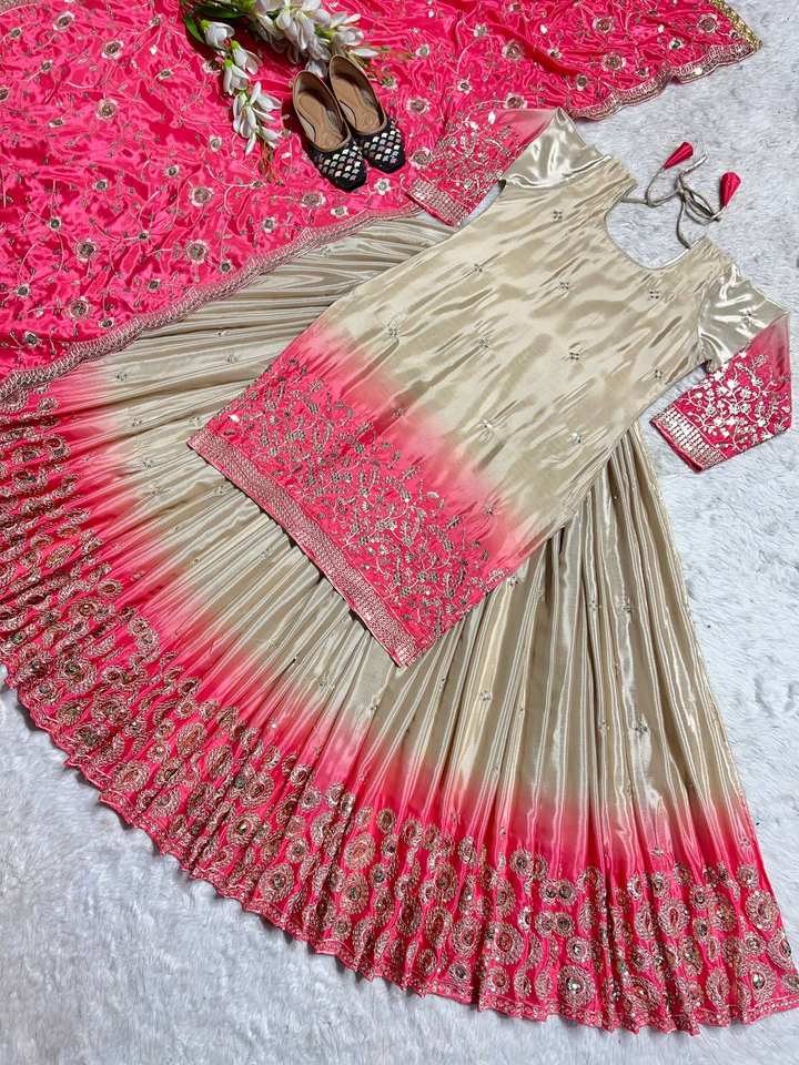 Lehenga choli ผ้าชิโน่ปักลำดับแบบดั้งเดิมสวมใส่สำหรับงานปาร์ตี้