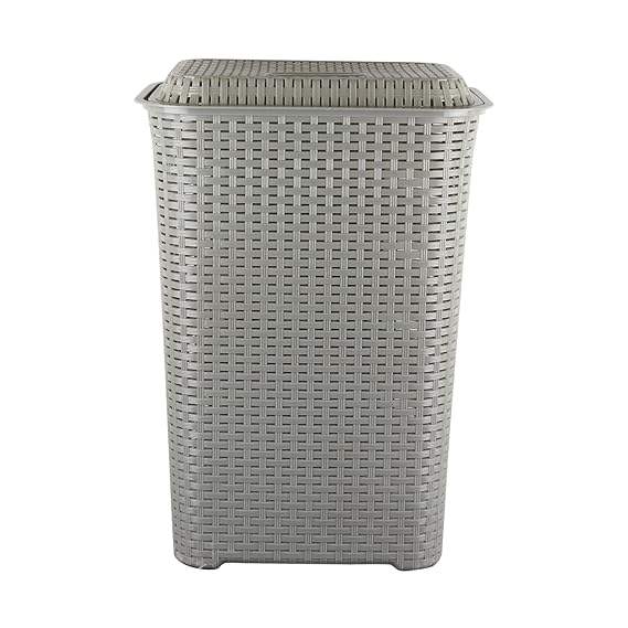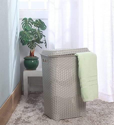 ตะกร้าผ้าพร้อมฝาปิด 50 ลิตร น้ำหนักเบา พกพาสะดวก กล่องเก็บของพลาสติกอเนกประสงค์ สำหรับเสื้อผ้า ของเล่น หนังสือ สีเทาอ่อน