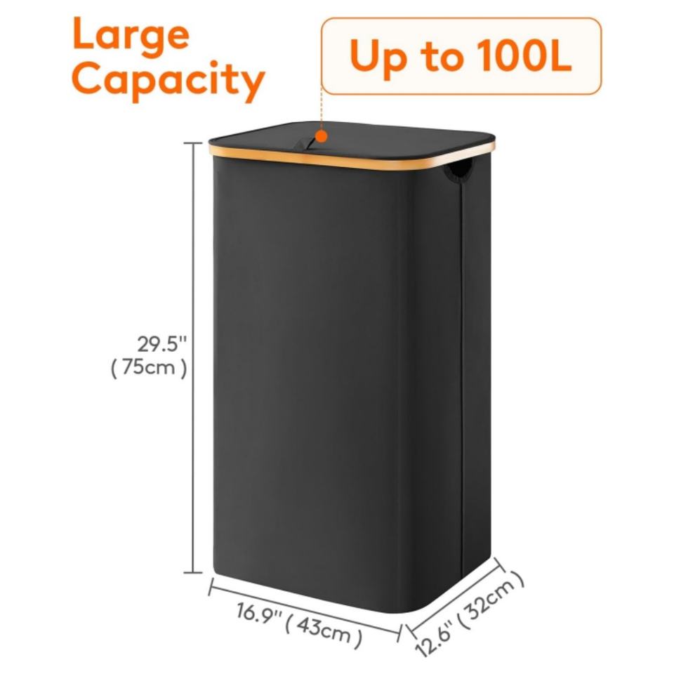 ตะกร้าผ้าพร้อมฝาปิด, ตะกร้าผ้าพร้อมหูจับไม้ไผ่และถุงผ้าซักแบบถอดได้, ตะกร้าผ้าขนาดใหญ่แบบพับได้