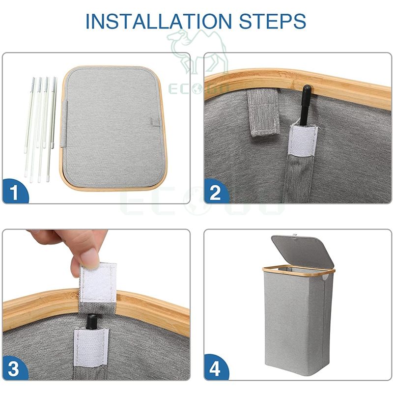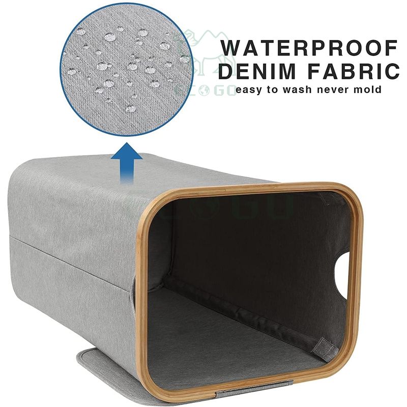 ตะกร้าซักผ้าไม้ไผ่พับได้มีฝาปิดกันน้ำกันเปื้อนสำหรับใส่เสื้อผ้าสกปรก