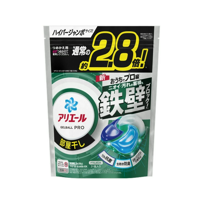 เจลทำความสะอาดผ้าเอเรียลบอลโปรสำหรับเติมแห้งในห้อง31ชิ้นเพิ่มความจุ2.8เท่ามี10แพ็ค P & G ขายส่ง2025ญี่ปุ่น
