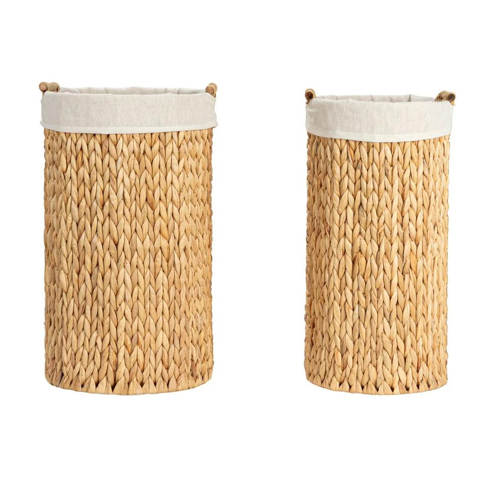 ตะกร้าใส่ผ้ามีหูหิ้ว:ขนาด: L: 16.3 x W13 x H22 M: L14 x W12 x H21,5 นิ้ว
