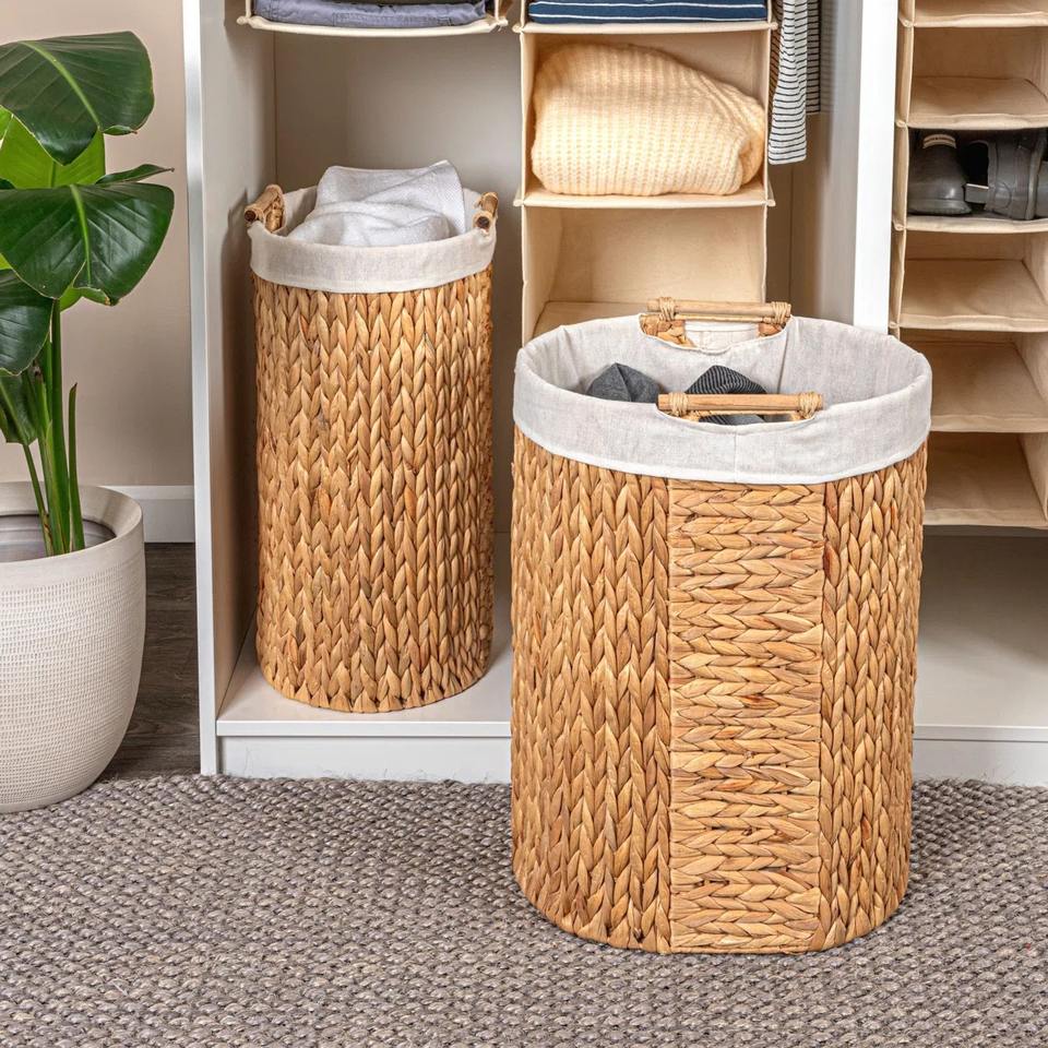 ตะกร้าใส่ผ้าพร้อมหูหิ้ว ตะกร้าเก็บของทำมือ ขายส่ง เป็นมิตรกับสิ่งแวดล้อม ผลิตในเวียดนาม