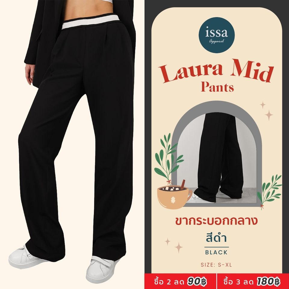 Laura กางเกงทรงตรงเอวสูงสองสีตัวหนาของผู้หญิงที่ทำให้ดูสง่างามประดับด้วยลูกไม้ถักโครเชต์ที่ดูโดดเด่นในทุกๆวัน