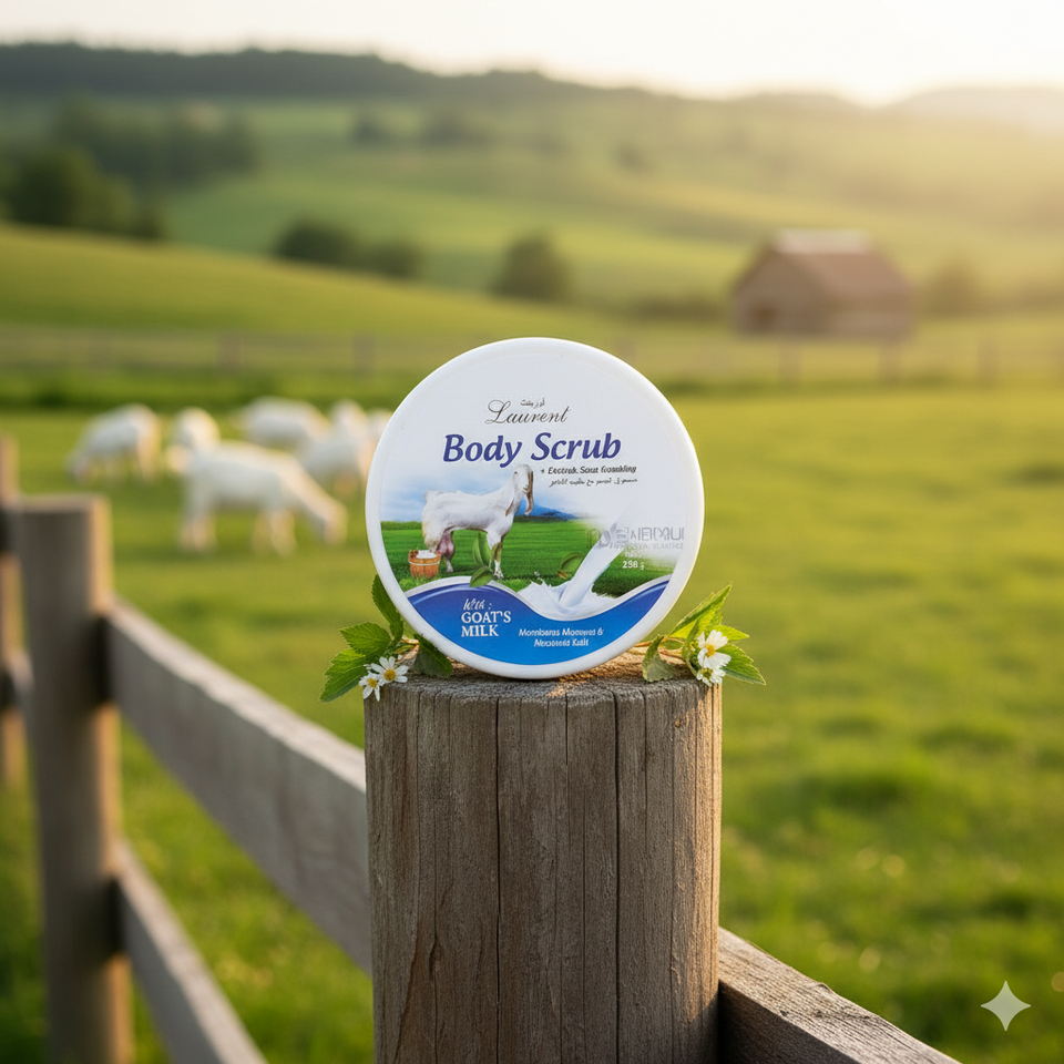 ลอเรนท์250gr สครับน้ำนมแพะสำหรับขัดผิวคุณภาพสูงและปรับผิวขาว