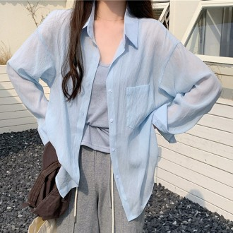 Laurie Women's Summer Long Sleeve Interim Blouse Loose Fit See-Through Shirt with Elegant Style