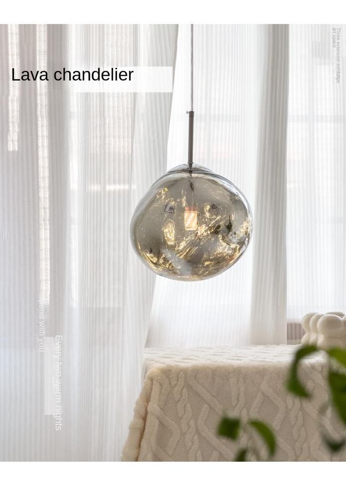 โคมไฟระย้าแก้วรูปทรงวงรี ดีไซน์เรียบง่ายทันสมัย ปรับความสว่างได้ โครงเหล็ก LED แสงวอร์มไวท์ ปรับความสูงได้ โคมทรงกระบอก