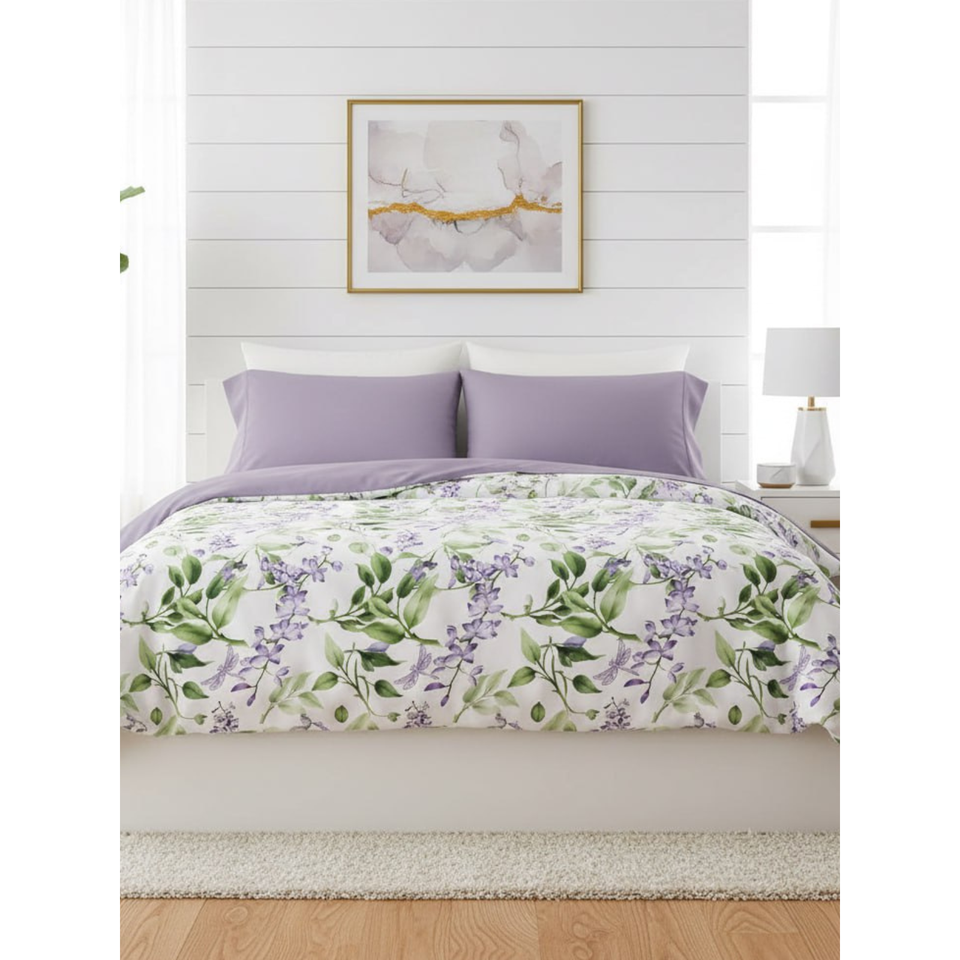 ชุดเครื่องนอนผ้าฝ้ายพิมพ์ลายดอกลาเวนเดอร์ 100% เนื้อผ้านุ่ม ระบายอากาศได้ดี สบายตัว ความหนาแน่นของผ้า 240/120 เส้นด้าย ซักเครื่องได้ เหมาะสำหรับใช้ในบ้าน