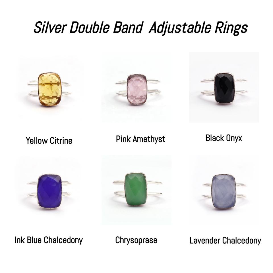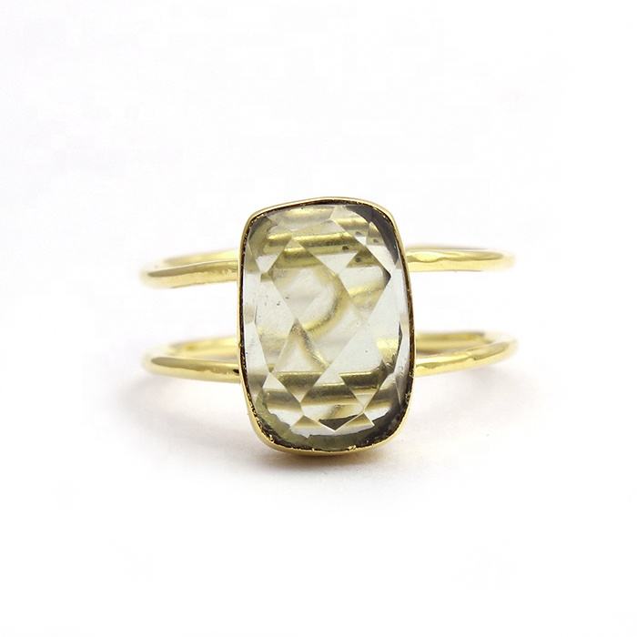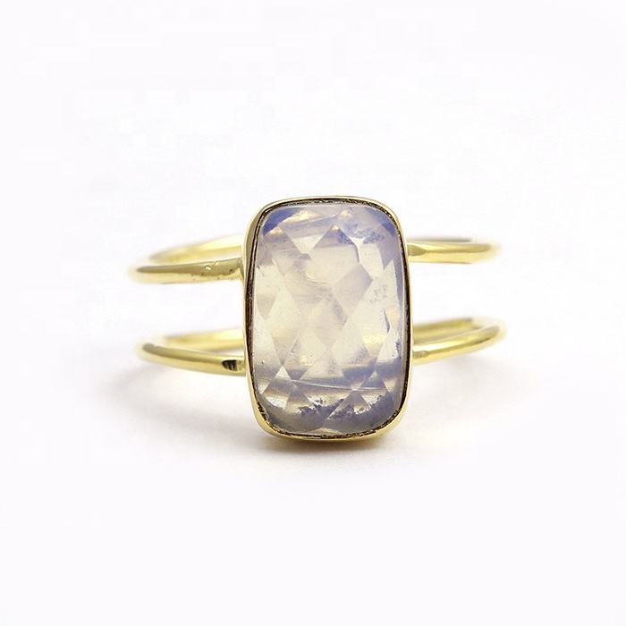แหวนพลอยคาลซิโดนีลาเวนเดอร์ทำมือทรงสี่เหลี่ยมผืนผ้าสายคู่ปรับสีทองได้เครื่องประดับอัญมณีแฟชัน