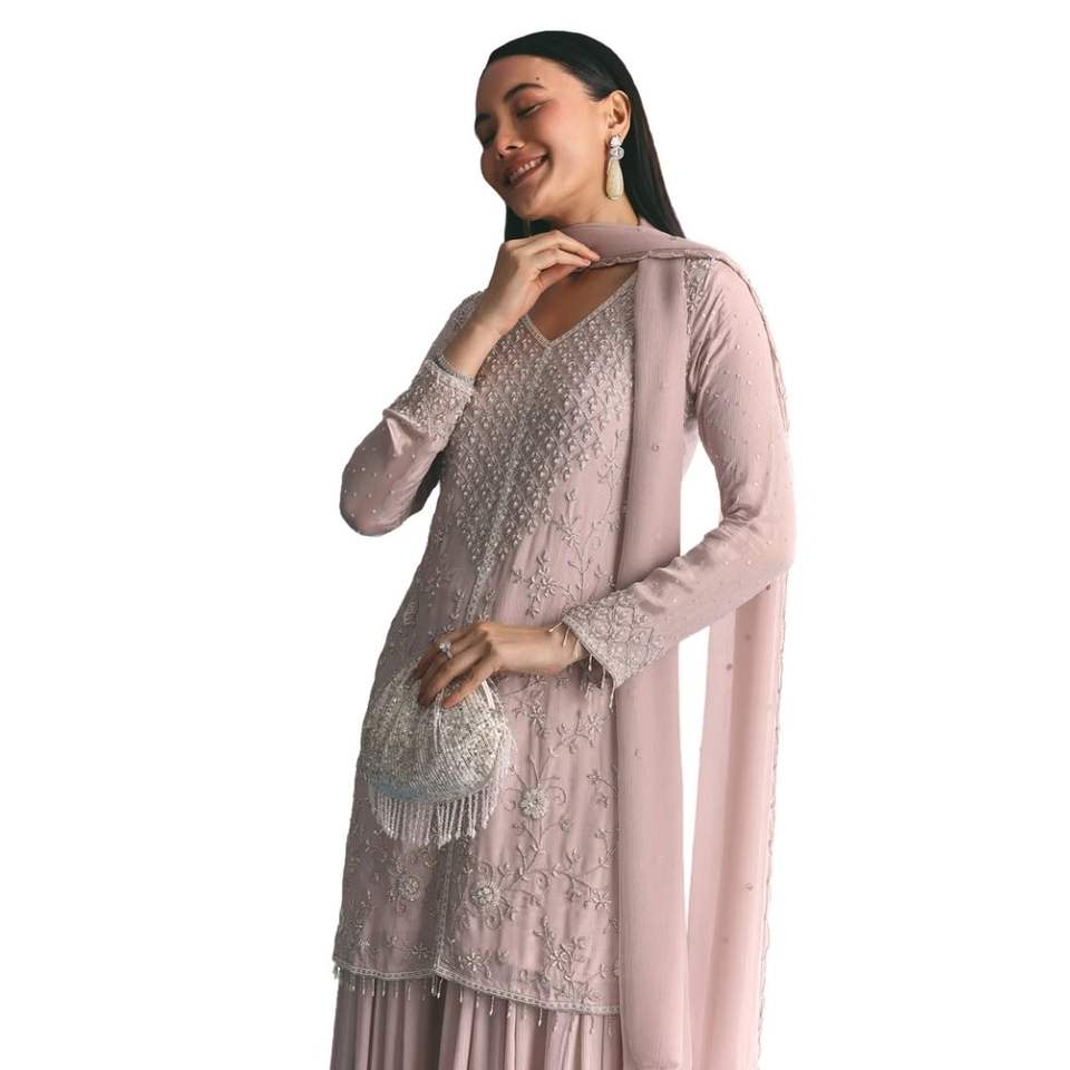 ชุดสูทลาเวนเดอร์ Chinon kurta Palazzo กับโมติคัทดานางานขายส่งเสื้อผ้าพื้นเมืองสำหรับผู้หญิง