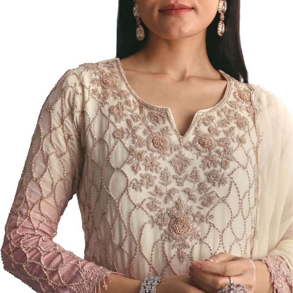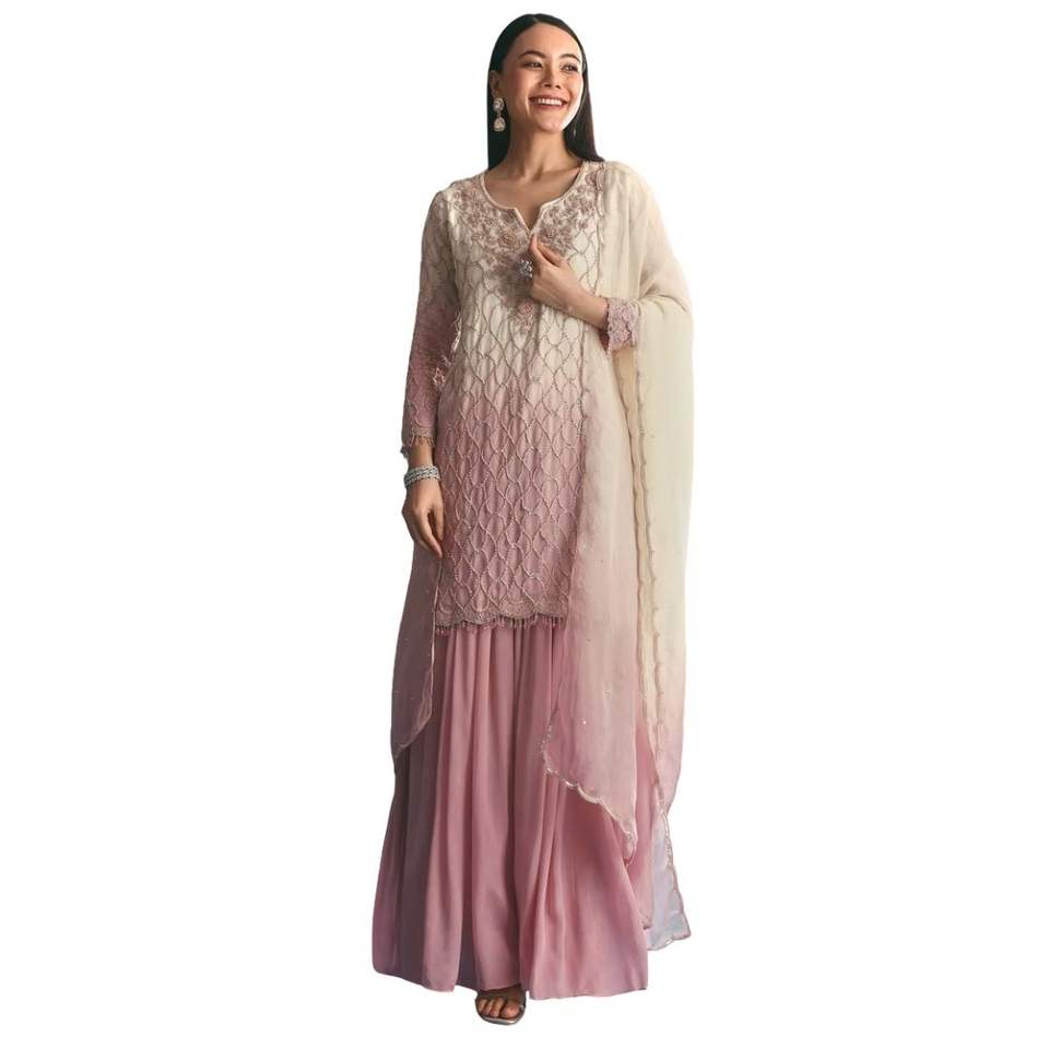 Lavender Georgette Silk Ombre Long Kurta Palazzo Suit Embroidered Sequins Work Wholesale Women Ethnic Apparel OEM Clothing Party