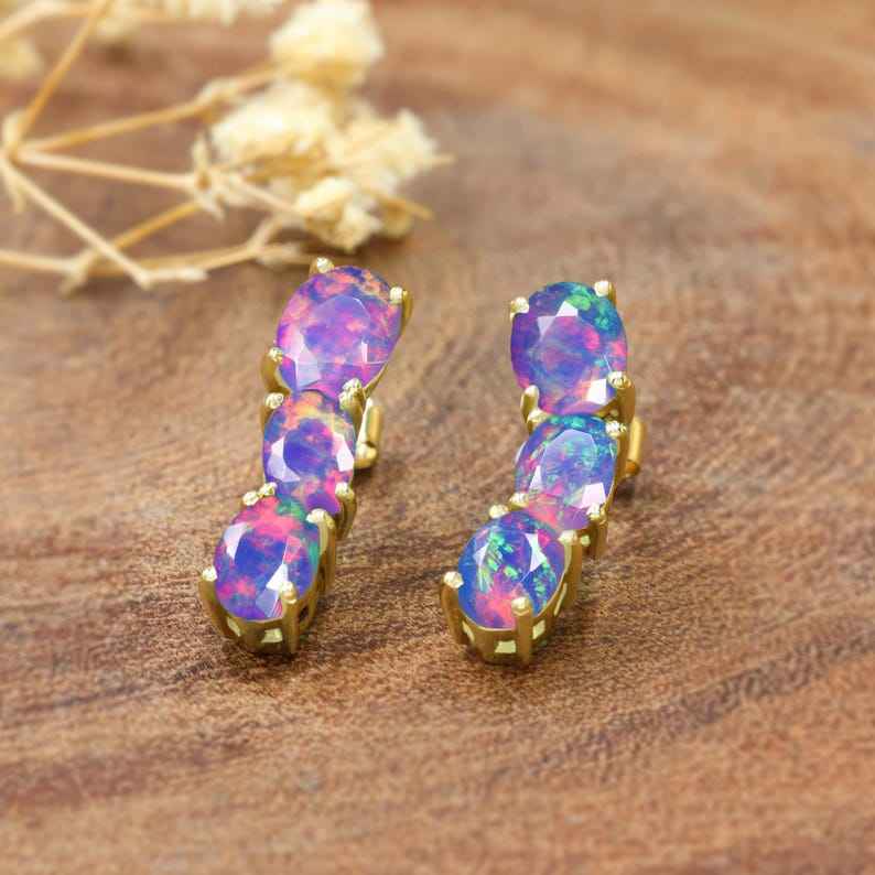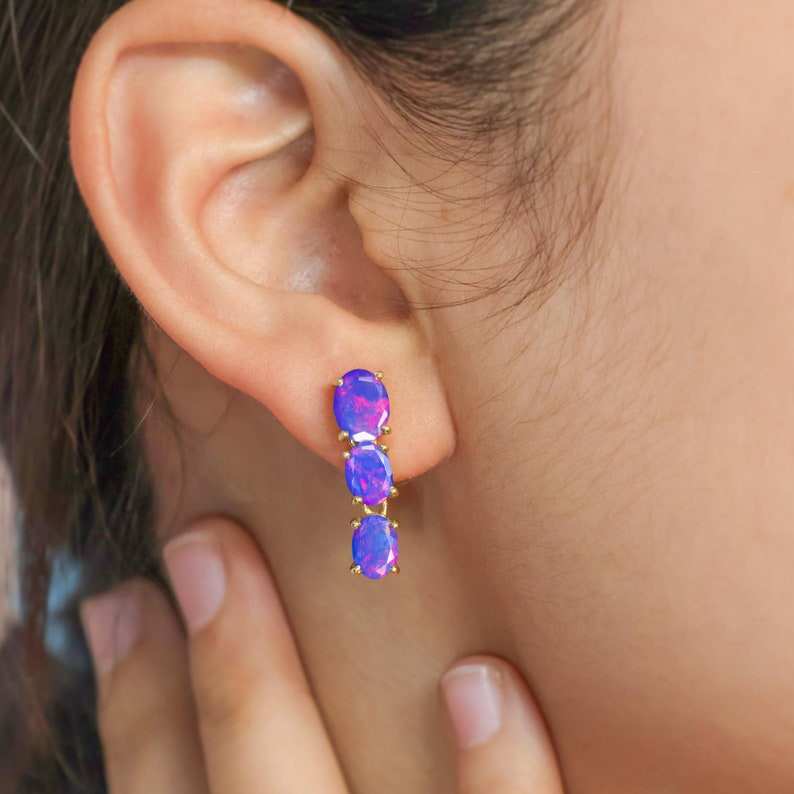ต่างหูโอปอลเอธิโอเปียไฟลาเวนเดอร์925พลอยเงินสเตอร์ลิงอ็อคโทของขวัญวันเกิดวินเทจสำหรับผู้หญิง