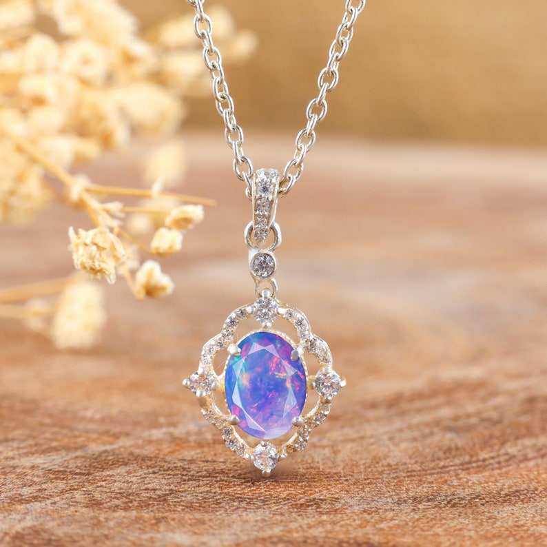 Product Name:Lavender Fire Ethiopian Opal Pendant Necklace