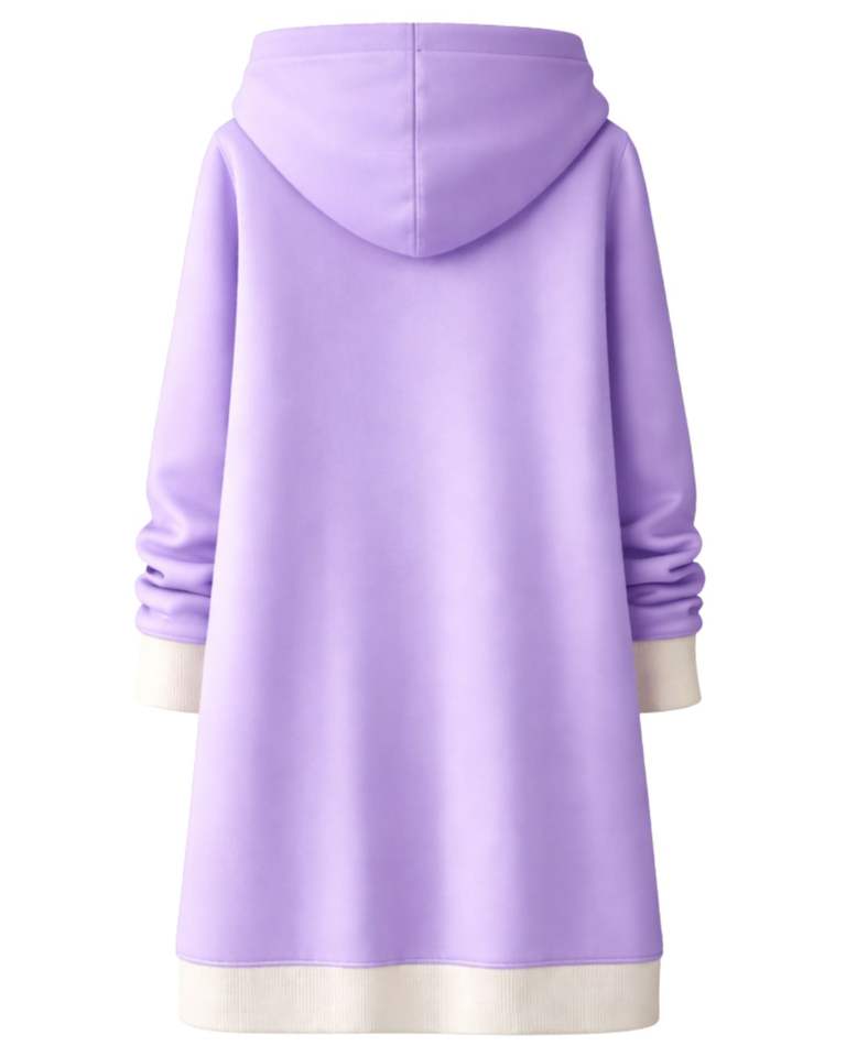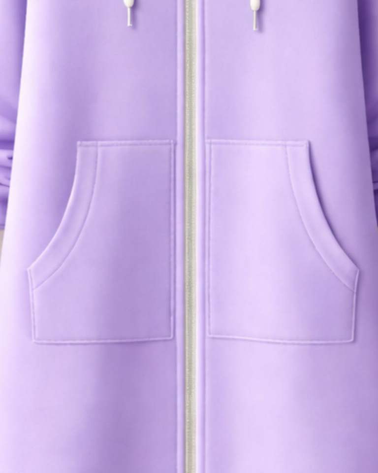 เสื้อฮู้ดซิปยาวสีลาเวนเดอร์สำหรับผู้หญิง เสื้อกันหนาวผ้าฟลีซมีฮู้ดพร้อมกระเป๋าจิงโจ้ เสื้อคลุมลำลองอุ่นสบาย รับผลิตตามแบบ OEM จากโรงงาน