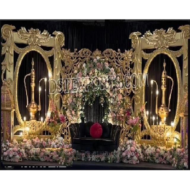 Lavish Design Wedding Stage Golden Backdrop Frames
