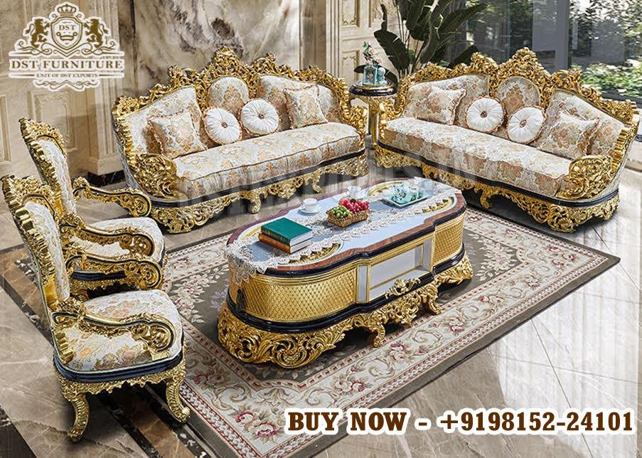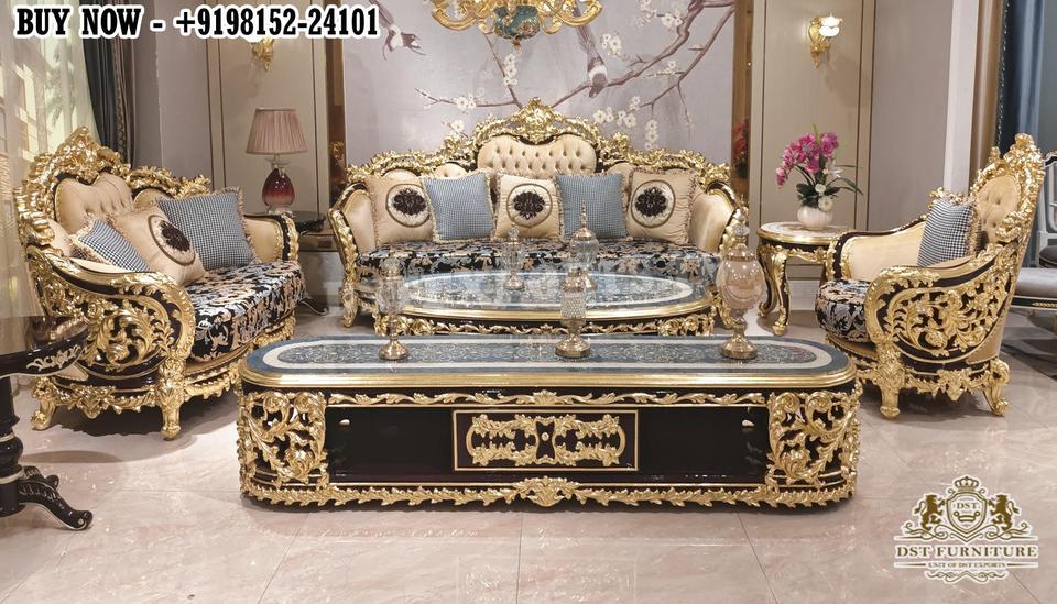 Lavish European Hand Carved L Shape Sofa Set