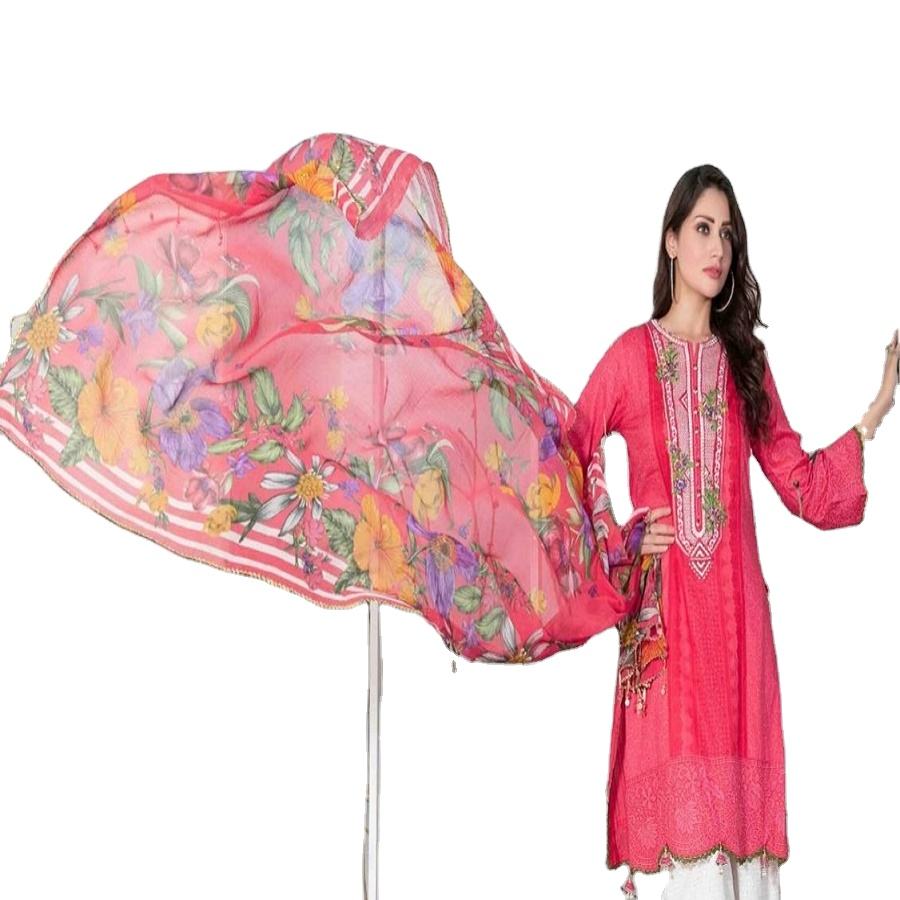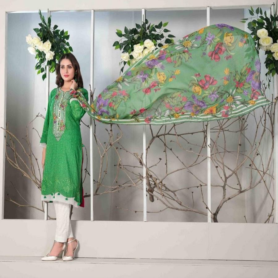 ชุดสนามหญ้า3ชิ้นพร้อมลายปักสำหรับผู้หญิงโดย Tawakkal Volume Eshal ปากีสถานคอลเลกชันฤดูร้อน