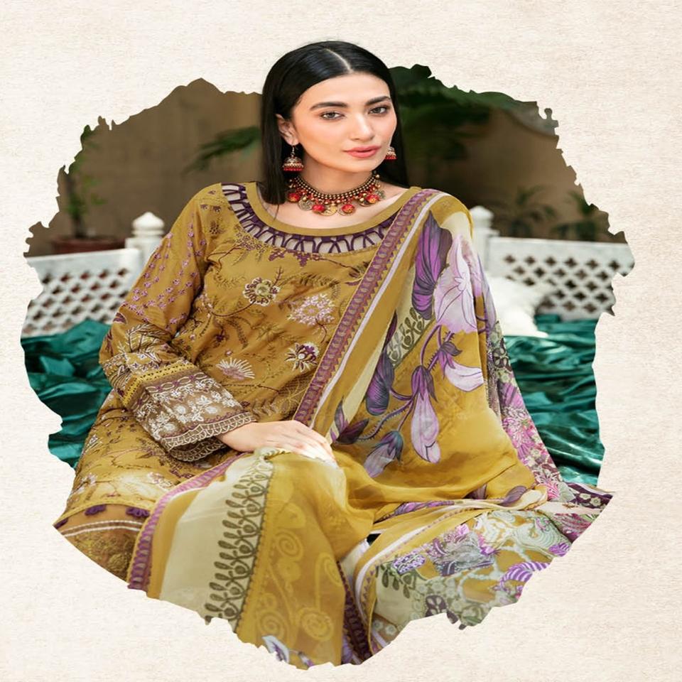 ชุดปาร์ตี้ปากีสถานคอลเลกชันสนามหญ้าสำหรับผู้หญิงชุด3ชิ้นโดย Ramsha Vol MASHAAL-8ส่าหรีสำหรับสาวๆชุดแต่งงาน