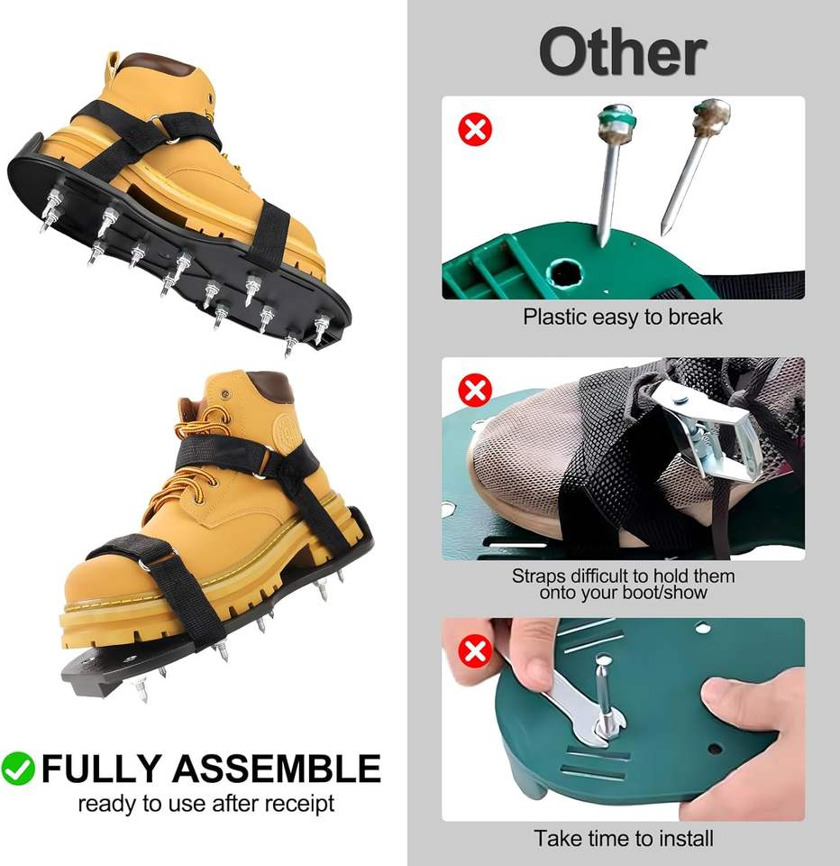 เครื่องเติมอากาศสำหรับสนามหญ้าที่มีเดือยแหลมอีพ็อกซี่ประกอบเต็มรูปแบบฝาครอบพื้นรองเท้าแหลมสีดำ