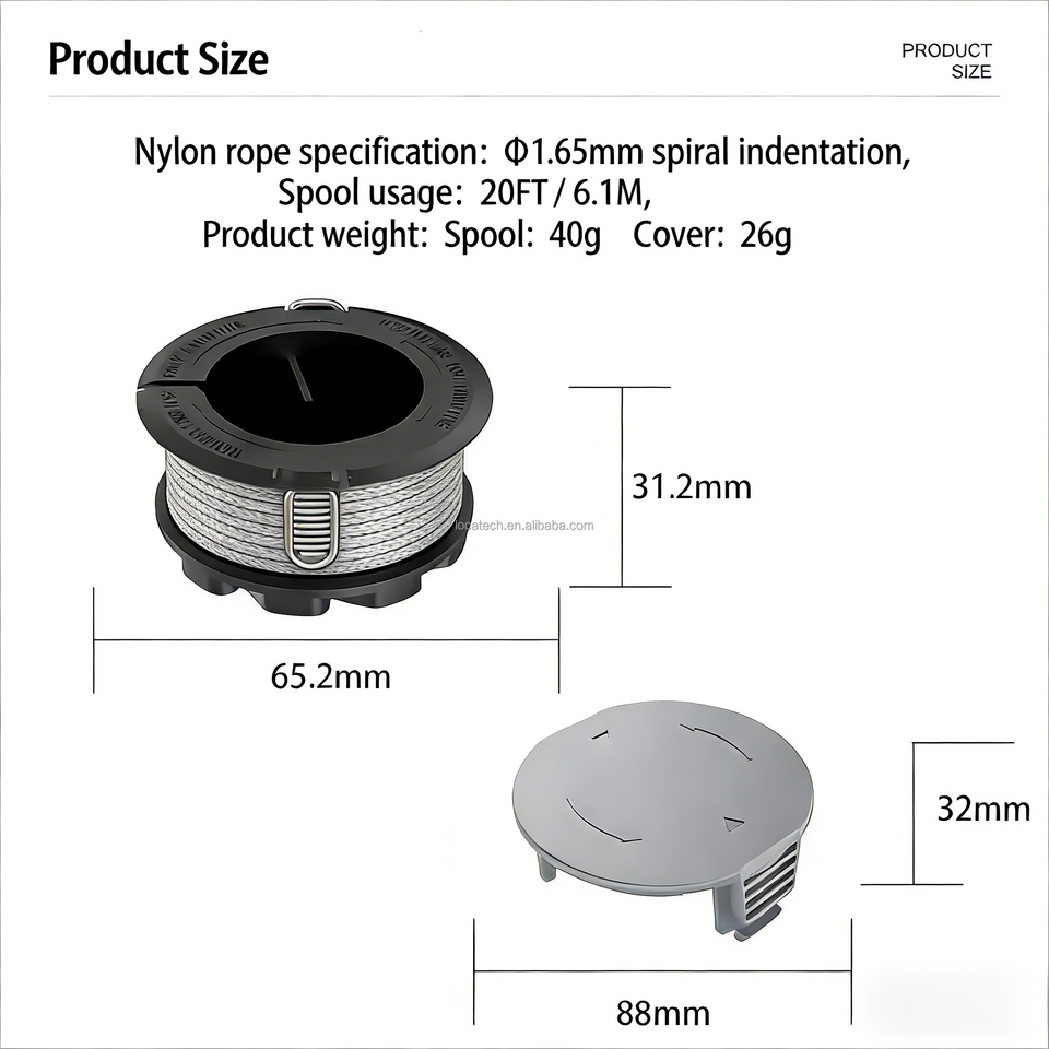 อะไหล่เครื่องตัดหญ้า หัวตัดแบบสปูล ขนาด 1.6 มม. ยาว 6.1 ม. ฝาครอบสีดำ สำหรับเครื่องตัดหญ้าอเนกประสงค์ รุ่น GrassCut 18-26 น้ำหนัก 42 กรัม รับประกัน 1 ปี