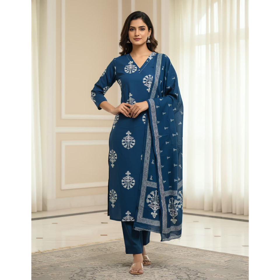 Product Name:Dhabu cotton placement print 3 pcs set