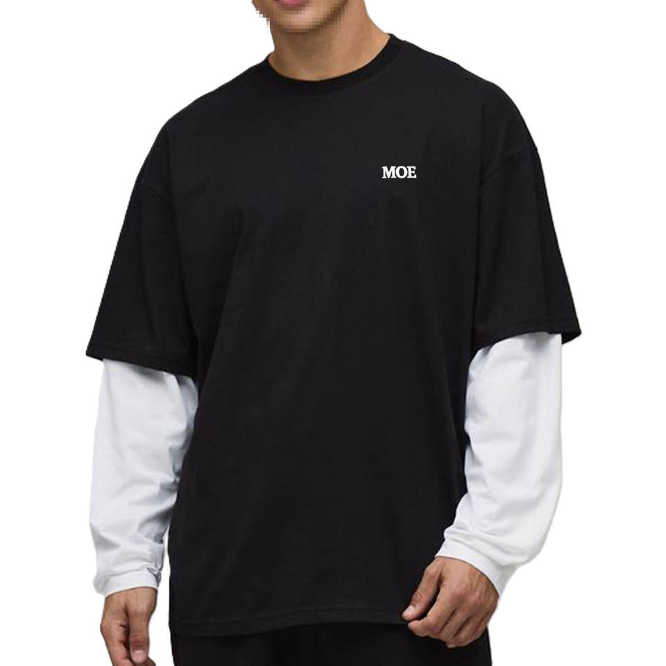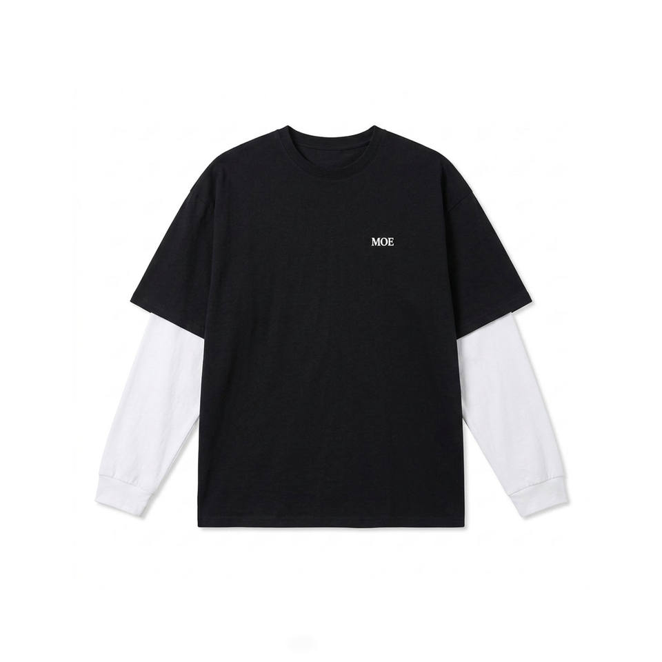 เสื้อยืดแขนยาวผู้ชายแบบมีเลเยอร์ ผ้าฝ้ายทรงโอเวอร์ไซส์ สไตล์สตรีทแวร์ แขนสองชั้น ลำลอง สกรีนโลโก้ได้ตามสั่ง ขายส่ง แบรนด์แฟชั่น