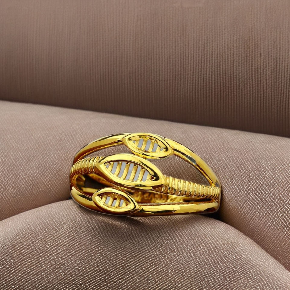 แหวนทองทรงวงรีแบบซ้อนชั้น | ดีไซน์แถบตรงกลางแบบมีลาย | ทองคำแท้สีเหลือง น้ำหนัก 2.760 กรัม ดีไซน์ทันสมัย