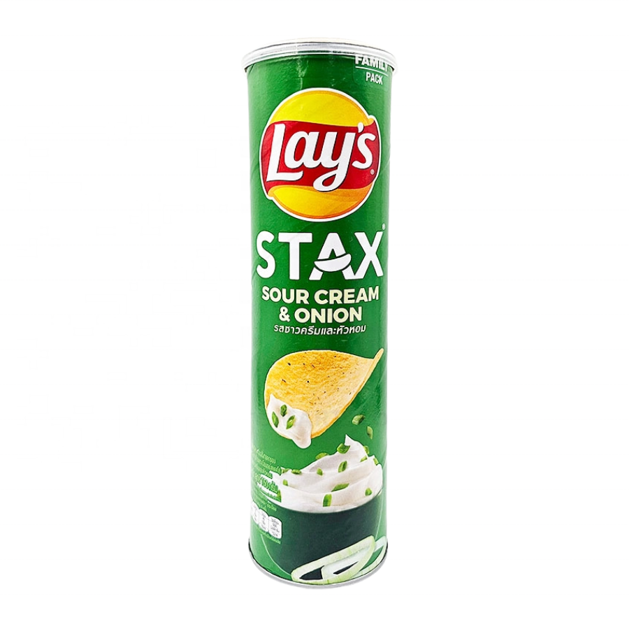 เลย์ สแต็กซ์ ซาวครีม ออนิออน 150 กรัม รสชาติครีมเปรี้ยวหอมกลิ่นหอมของหัวหอม พร้อมกรอบอร่อยแบบมันฝรั่งทอด สามารถวางซ้อนกันได้