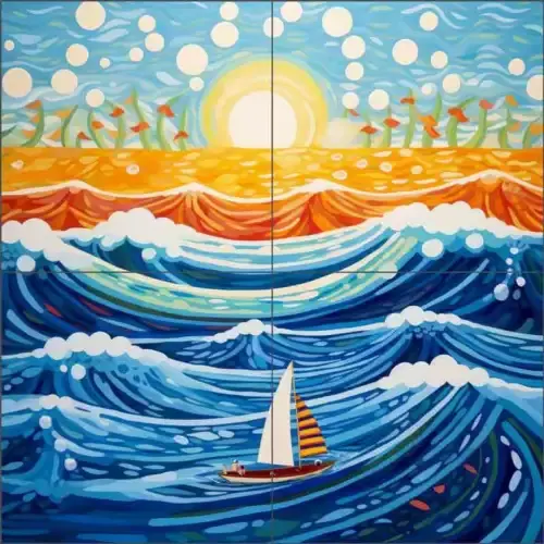 ภาพจิตรกรรมฝาผนังเซรามิกลายเรือใบ OB-LAZ14-65ผนังลายเรือใบ