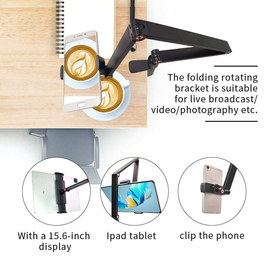 ที่วางโทรศัพท์และแท็บเล็ตแบบติดเตียง ปรับมุมได้หลายระดับ ดีไซน์แบบหนีบ 3 แขน สำหรับใช้ในบ้านและสำนักงาน ทำจากโลหะ ใช้ได้กับโน้ตบุ๊ก