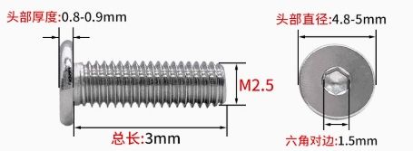 Legood 304สกรูหัวแบนหกเหลี่ยมสแตนเลส x3mm M2.5 HD 4.8 ~ 5มม