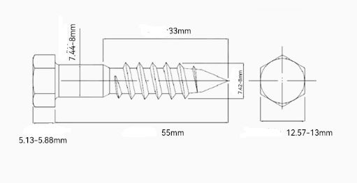Legood HEX สกรูไม้ M8X55mm สแตนเลส304