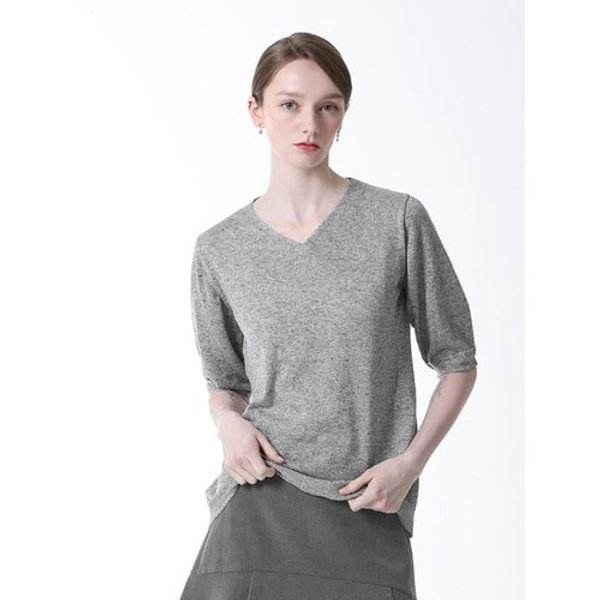 ชุดเสื้อสเวตเตอร์ผ้าลินินผสมยี่ห้อ TV สำหรับผู้หญิงชุดเสื้อถักแขนสั้นคอวีแบบซักได้4ชิ้น