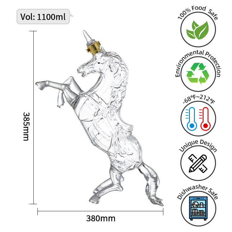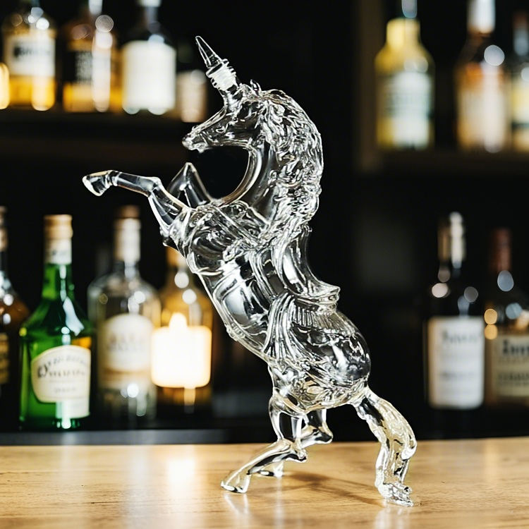 เหยือกแก้วไร้สารตะกั่วรูปยูนิคอร์น - เหยือกไวน์แดงสุดหรูสำหรับตกแต่งตู้ไวน์และเสิร์ฟ