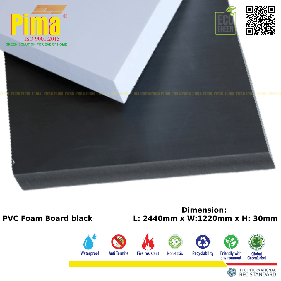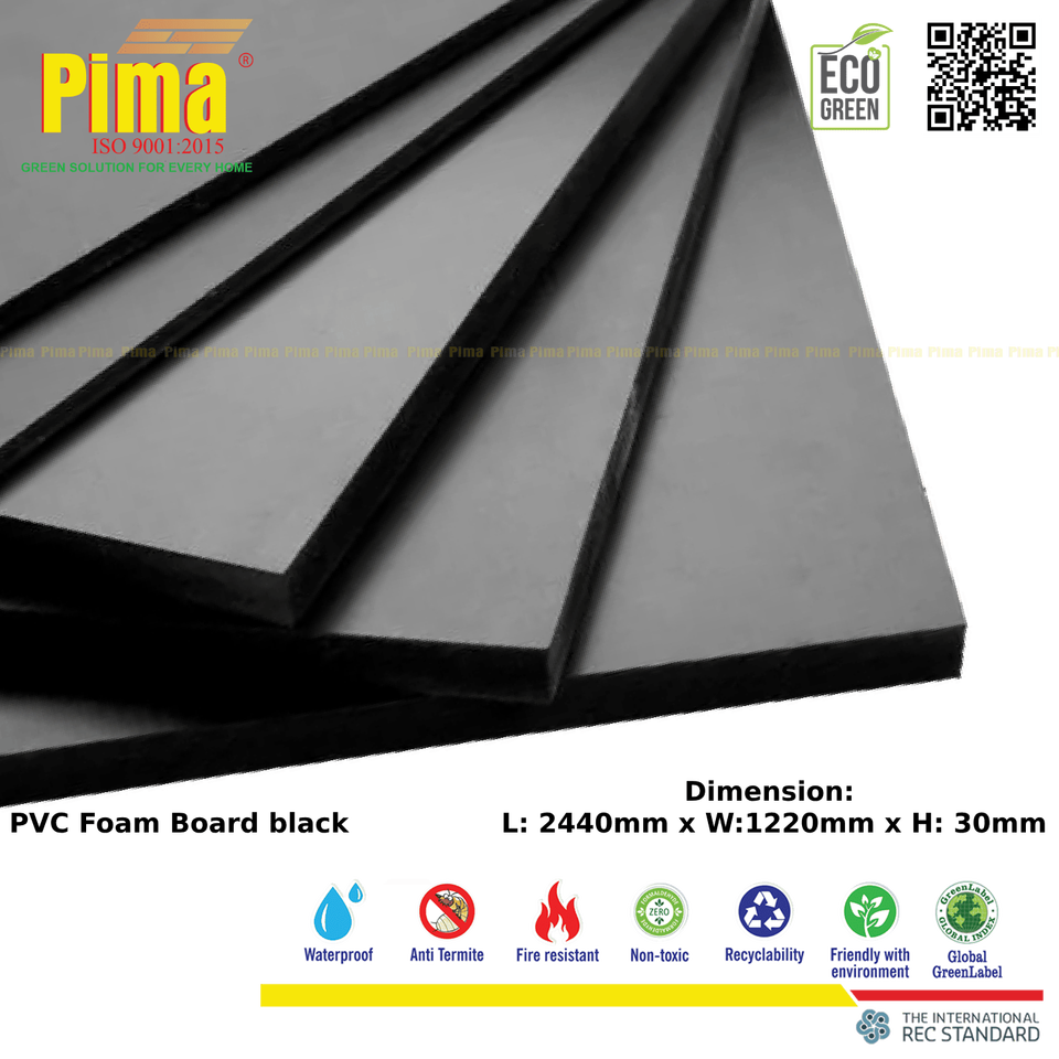 แผ่นโฟม PVC-WPC ไร้สารตะกั่วความหนา30มม. 0.6กรัม/cm3สีดำความหนาแน่นเชิงนิเวศสำหรับห้องครัวรหัส HS