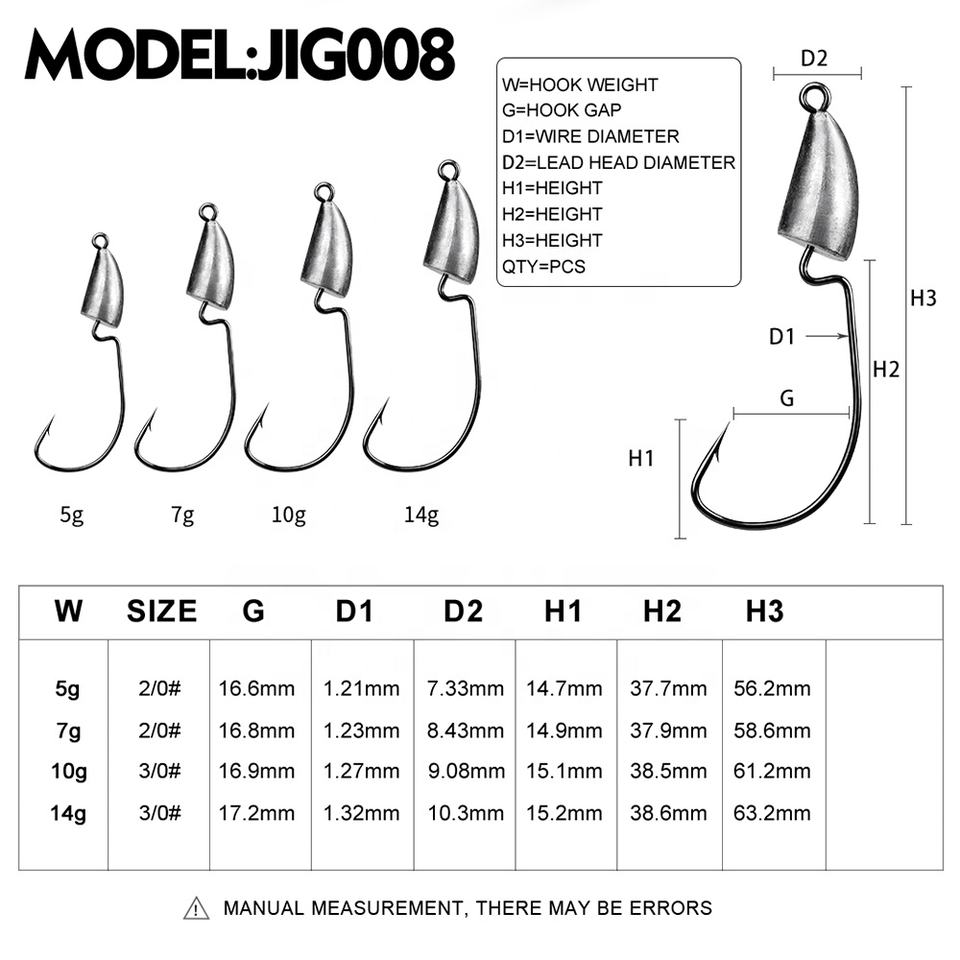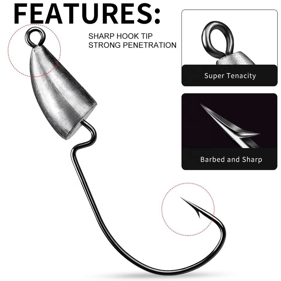 เบ็ดตกปลาหัวตะกั่ว5G 7G 10G 14G,ตะขอตกปลาหัวจิ๊กไม่มีตะเข็บตะขอหนอนออฟเซ็ตเท็กซัสอุปกรณ์เสริม