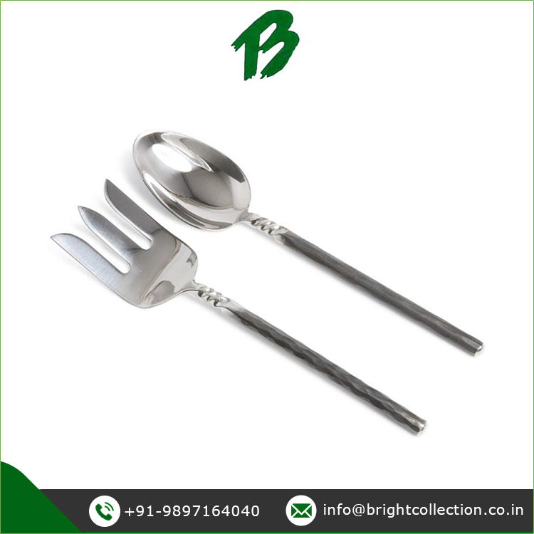 ชุดเสิร์ฟสลัดสแตนเลสแบบเกลียวด้ามจับบิดมีดีไซน์ราชวงศ์