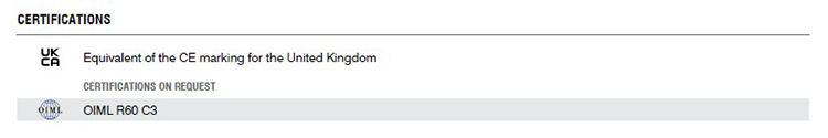 Deflection at nominal load:0.43 mm (22 kg), 0.7 mm (45 kg), 0.4 mm (110 kg)