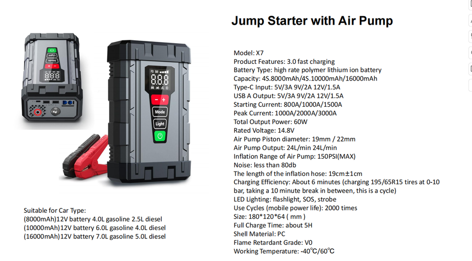 ชื่อผลิตภัณฑ์:เครื่องจั๊มสตาร์ท