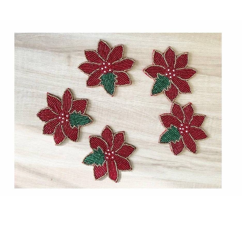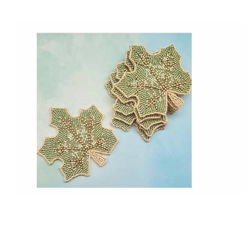 ที่รองแก้วลูกปัดใบไม้แพ็ค 4 ที่รองแก้วชาลูกปัดแฮนด์เมดสําหรับบาร์กาแฟและตกแต่งโต๊ะรับประทานอาหาร