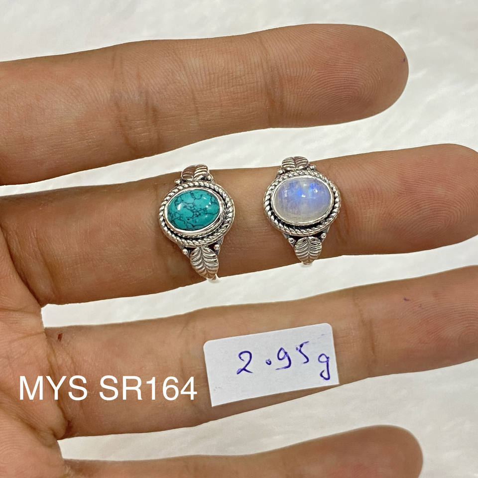 Leaf Design 925 Silver Ring Rainbow Moonstone & Turquoise 925 Sterling Silver Rings Wholesale Price Silver Jewelry
