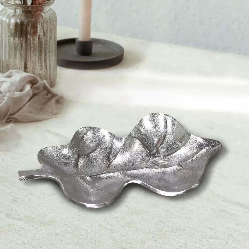 ถาดเสิร์ฟอลูมิเนียมขัดเงาคลาสสิกดีไซน์ใบไม้จากผู้ผลิตอินเดียใช้ในบ้านห้องครัวโรงแรมร้านอาหาร