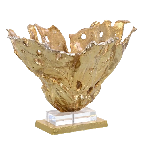 การออกแบบใบไม้สีทองชามโลหะสําเร็จรูปโต๊ะอาหารค่ํากลางชามเสิร์ฟอาหารตกแต่งโดยผู้ส่งออกชาวอินเดีย