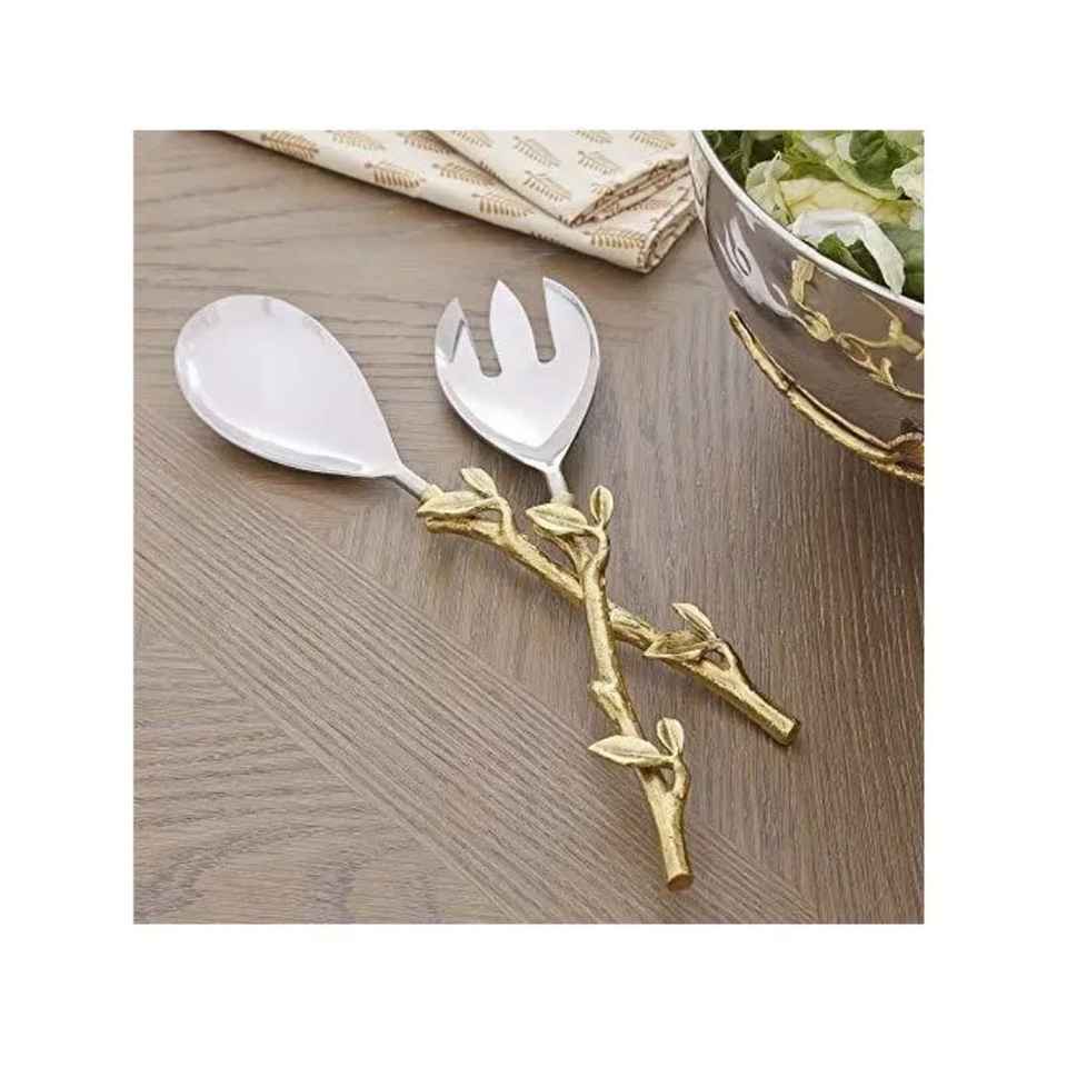 ชุดช้อนเสิร์ฟสลัดสแตนเลสแบบเป็นมิตรกับสิ่งแวดล้อม ดีไซน์ใบไม้ ด้ามจับขัดเงา ดีไซน์ใหม่ ปลอดภัยสำหรับเครื่องล้างจาน