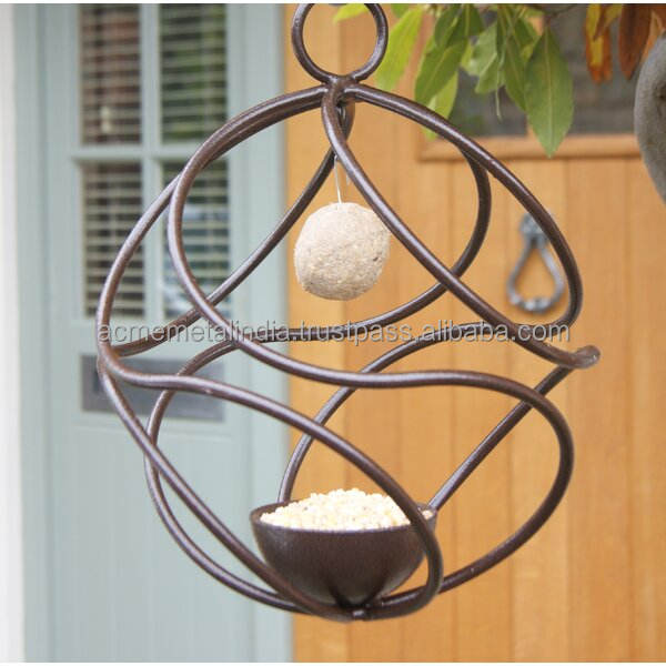 ตัวป้อนนกแบบแขวนดีไซน์ใบไม้ทำจากโลหะพร้อมตาข่ายทรงกลมเหมาะสำหรับสวนกลางแจ้งอุปกรณ์สำหรับสัตว์เลี้ยง