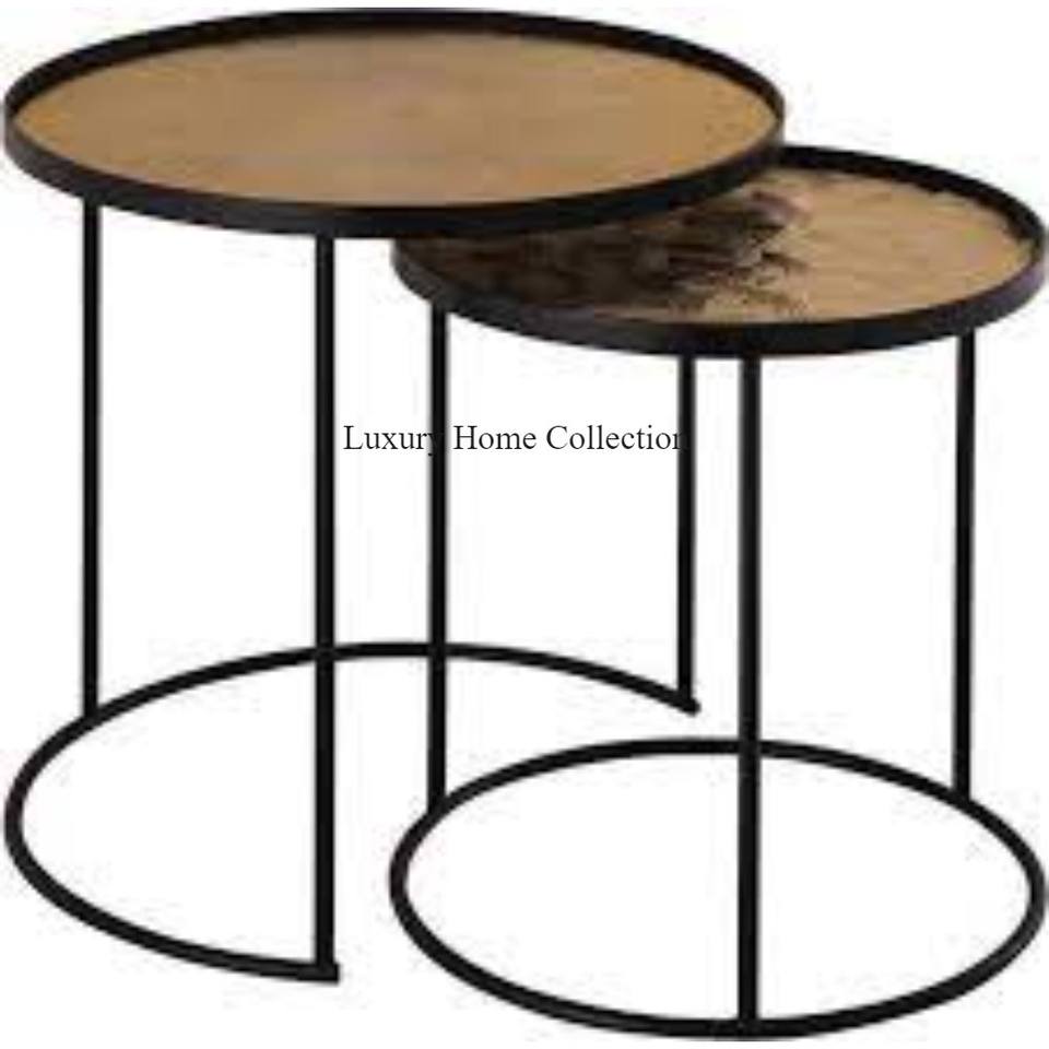 ชุดโต๊ะข้างและโต๊ะข้าง3ชั้นดีไซน์ใบไม้เฟอร์นิเจอร์ทำจากอลูมิเนียมสีทองเฟอร์นิเจอร์ที่น่าชื่นชม