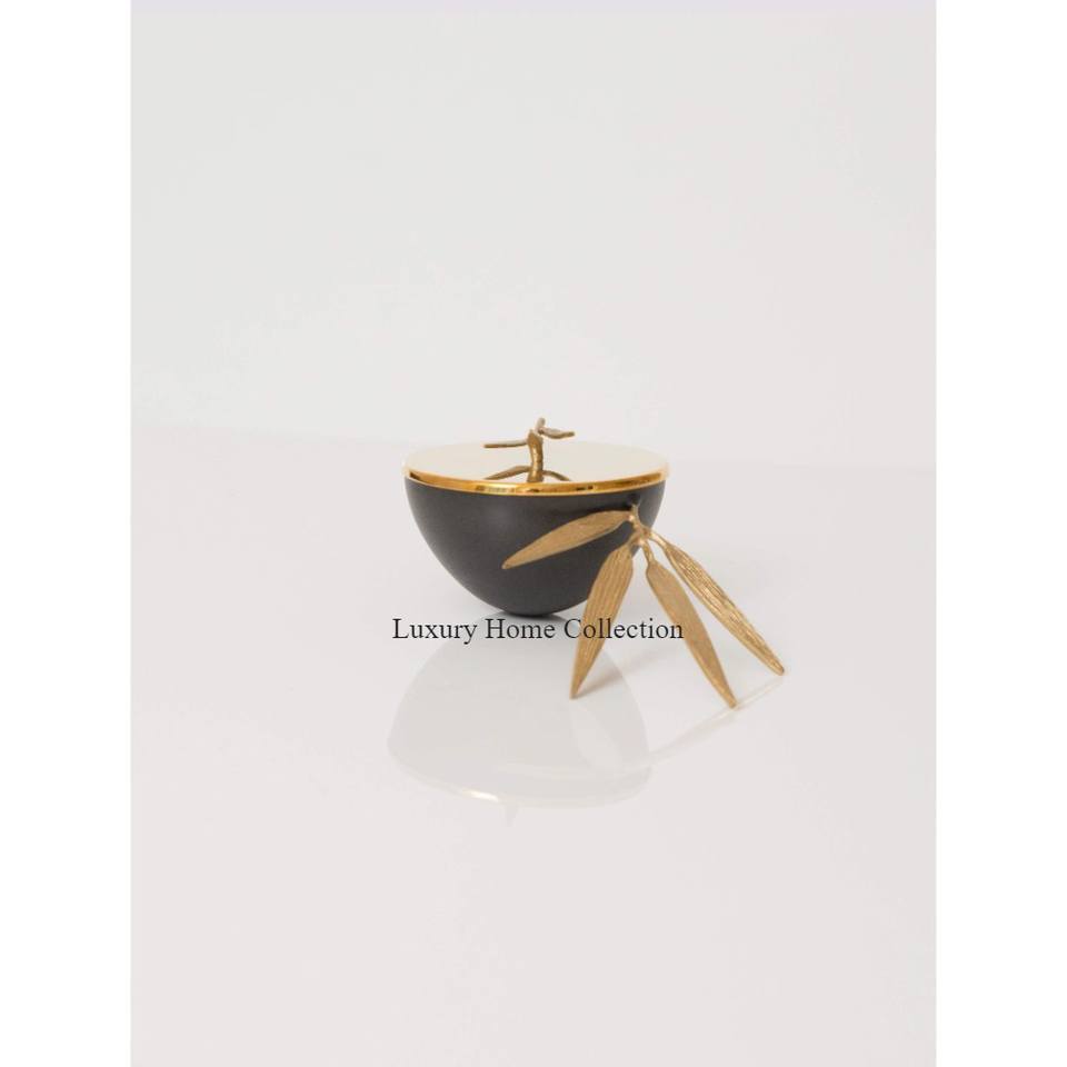 หัวเผาเครื่องหอมและที่วางธูปโลหะออกแบบเป็นรูปใบไม้สีทองและสีดำ