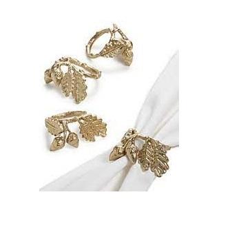 ที่วางผ้าเช็ดปากทรงใบไม้ดีไซน์,อุปกรณ์ตกแต่งโต๊ะงานแต่งงานแหวนผ้าเช็ดปากทำจากโลหะทองโบราณ