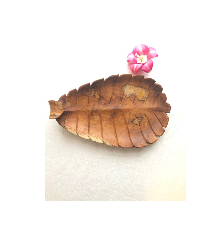 Leaf Design Solid Wooden Dry Fruits Serving Plate Brown Color Household Accessory Premium Quality Top Selling